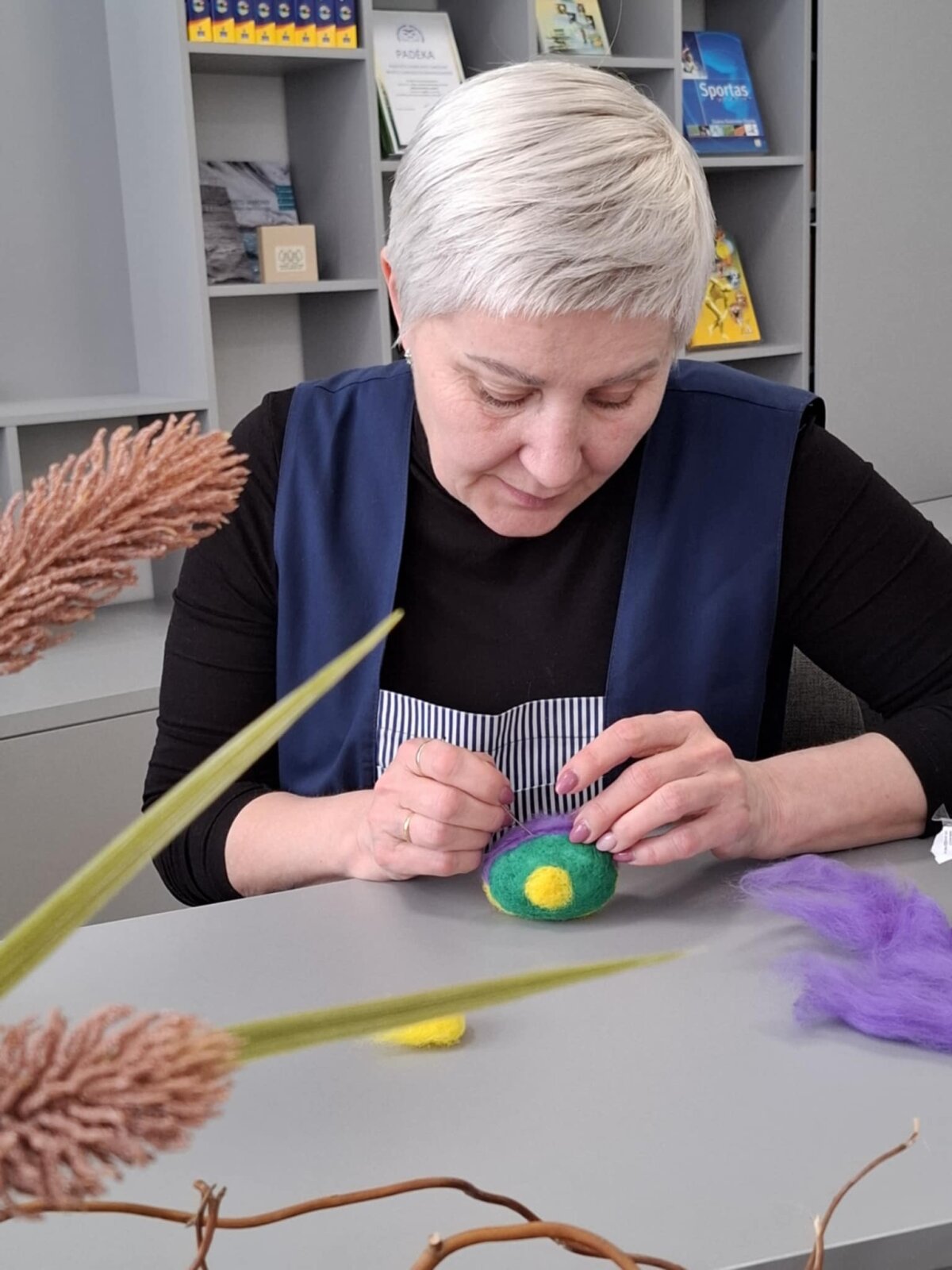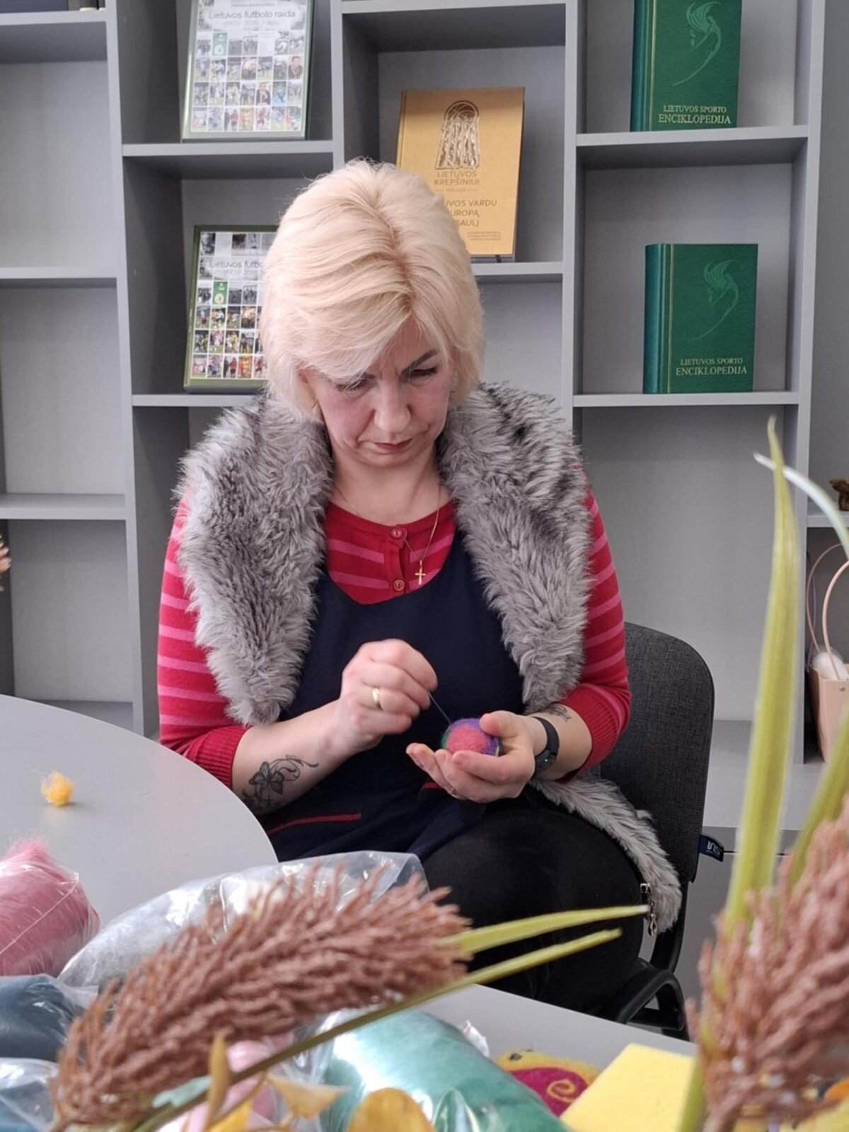 Gimnazijos bendruomenės nariai išbandė sausos vilnos vėlimo būdą, kuomet rankomis, adatėle ir natūralia vilna sukūrė ne tik grožį, bet ir ramybę viduje.